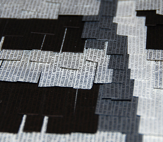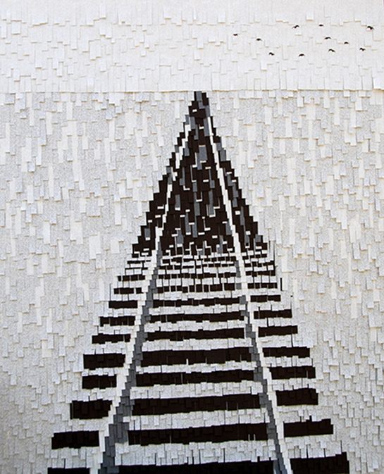 No master list of children who traveled the trains exists, but through extensive research I was able to gather a significant list of names of the children relocated. Those names are printed on every paper strip in the piece.